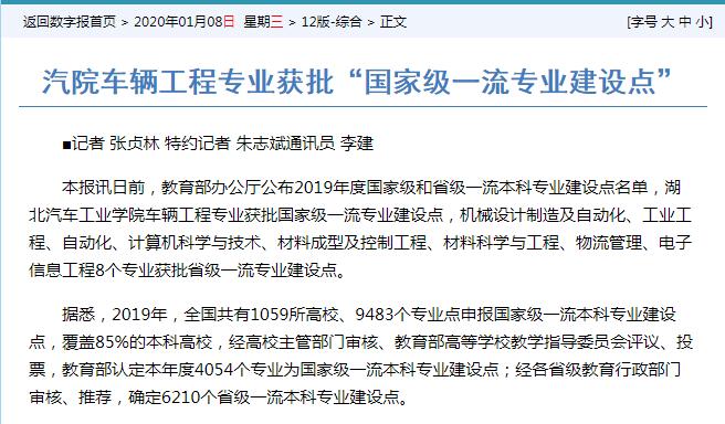 【十堰晚报】汽院车辆工程专业获批“国家级一流专业建设点”