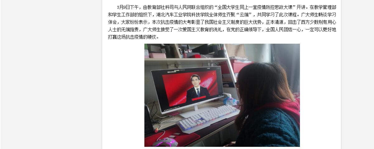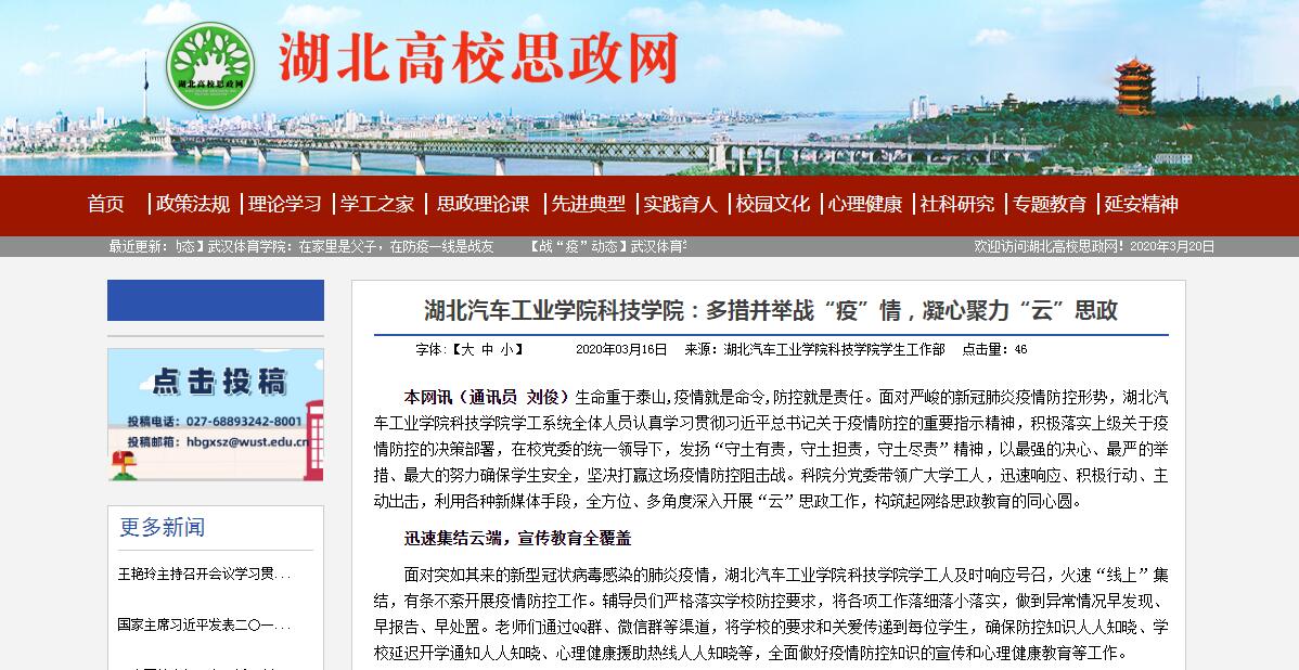 【湖北高校思政网】湖北汽车工业学院科技学院:多措并举战“疫”情,凝心聚力“云”思政