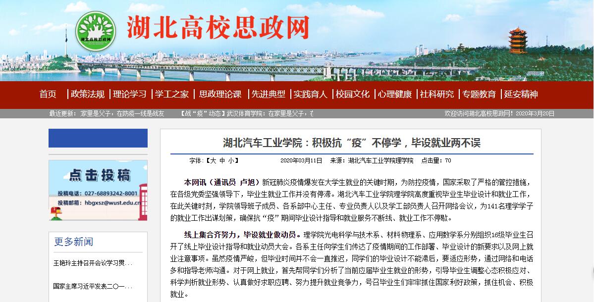 【湖北高校思政网】湖北汽车工业学院:积极抗“疫”不停学,毕设就业两不误
