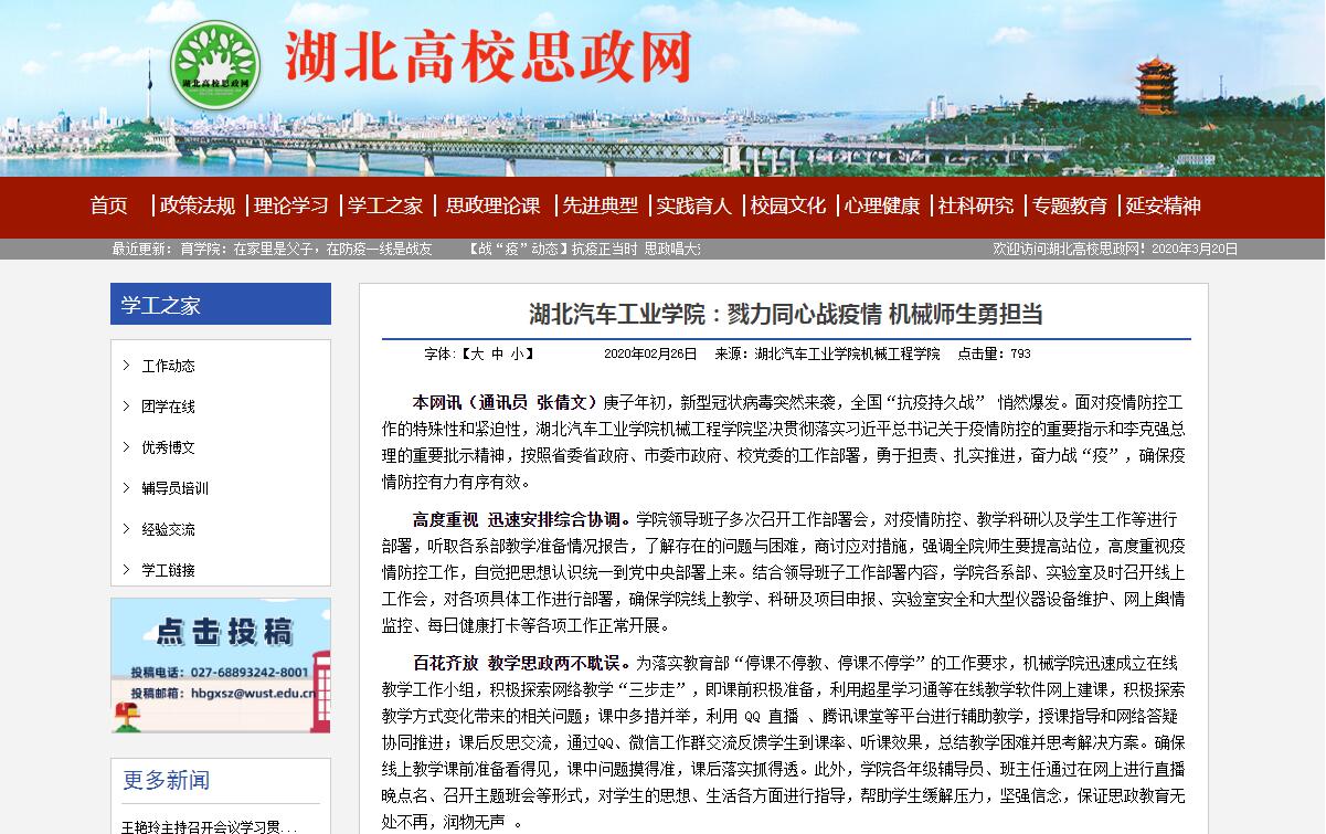 【湖北高校思政网】湖北汽车工业学院:戮力同心战疫情 机械师生勇担当