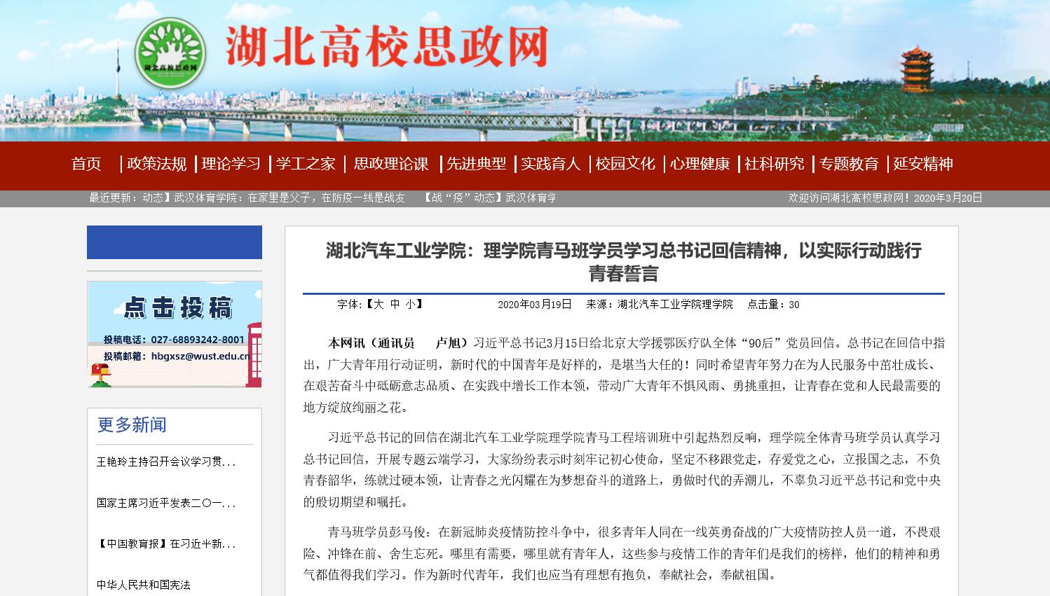 【湖北高校思政网】湖北汽车工业学院:理学院青马班学员学习总书记回信精神,以实际行动践行青春誓言