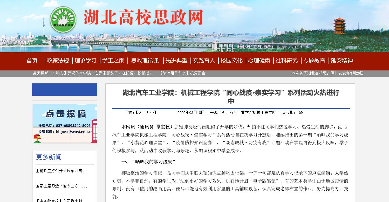 【湖北高校思政网】湖北汽车工业学院:机械工程学院“同心战疫·崇实学习”系列活动火热进行中