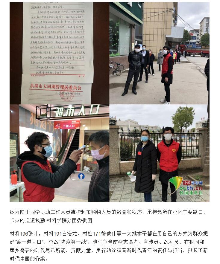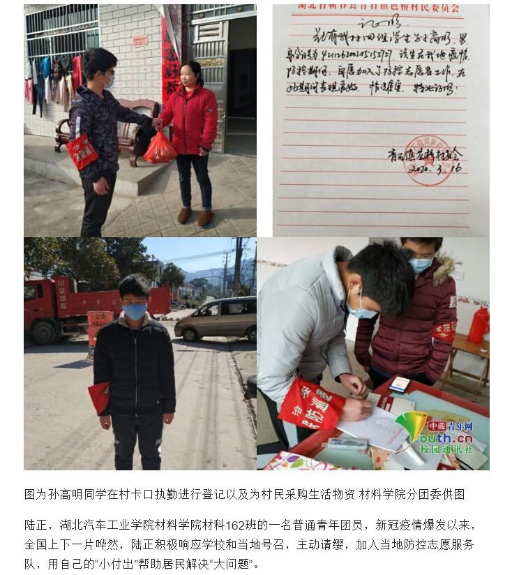 【中国青年网】众志成城 共抗疫情,湖北汽车工业学院材料学院的志愿者们用实际行动践行青年的使命与担当