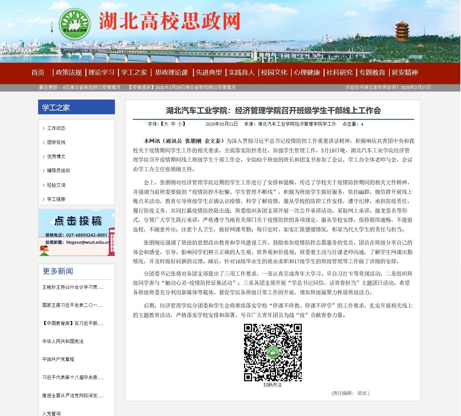 【湖北高校思政网】湖北汽车工业学院:经济管理学院召开班级学生干部线上工作会