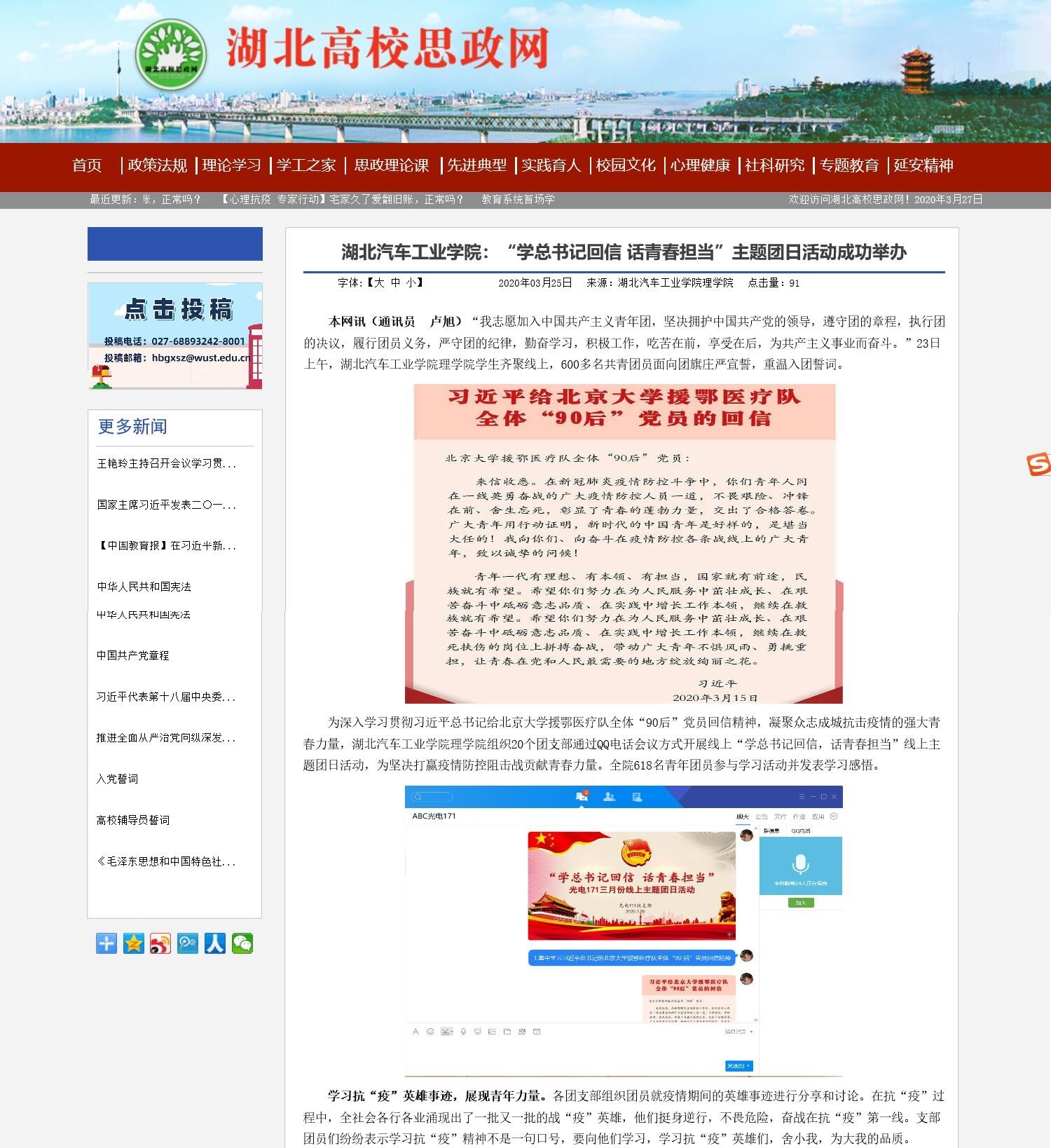 【湖北高校思政网】湖北汽车工业学院:“学总书记回信 话青春担当”主题团日活动成功举办