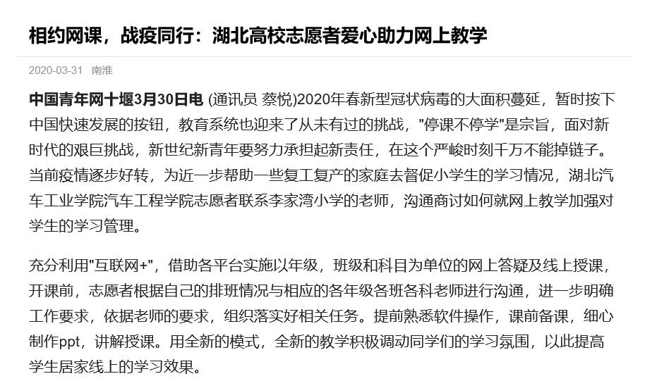 【中国青年网】相约网课,战疫同行:湖北高校志愿者爱心助力网上教学
