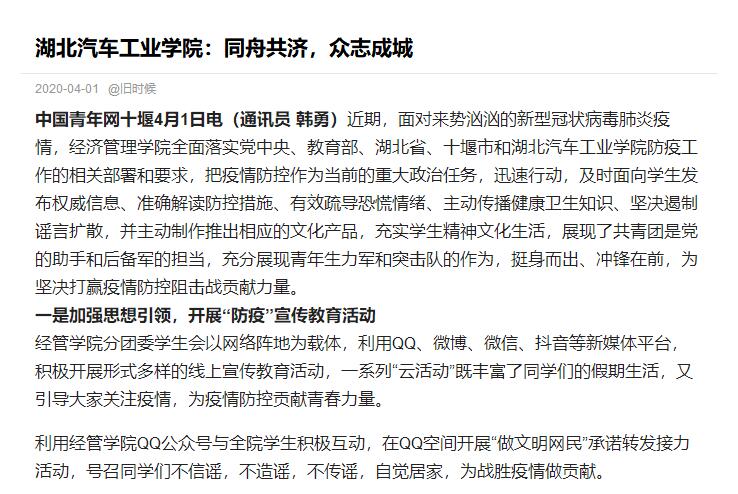 【中国青年网】湖北汽车工业学院:同舟共济,众志成城