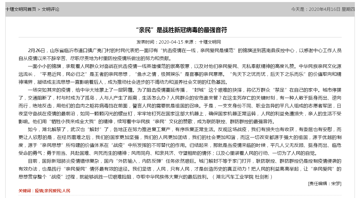 【十堰文明网】“亲民”是战胜新冠病毒的最强音符