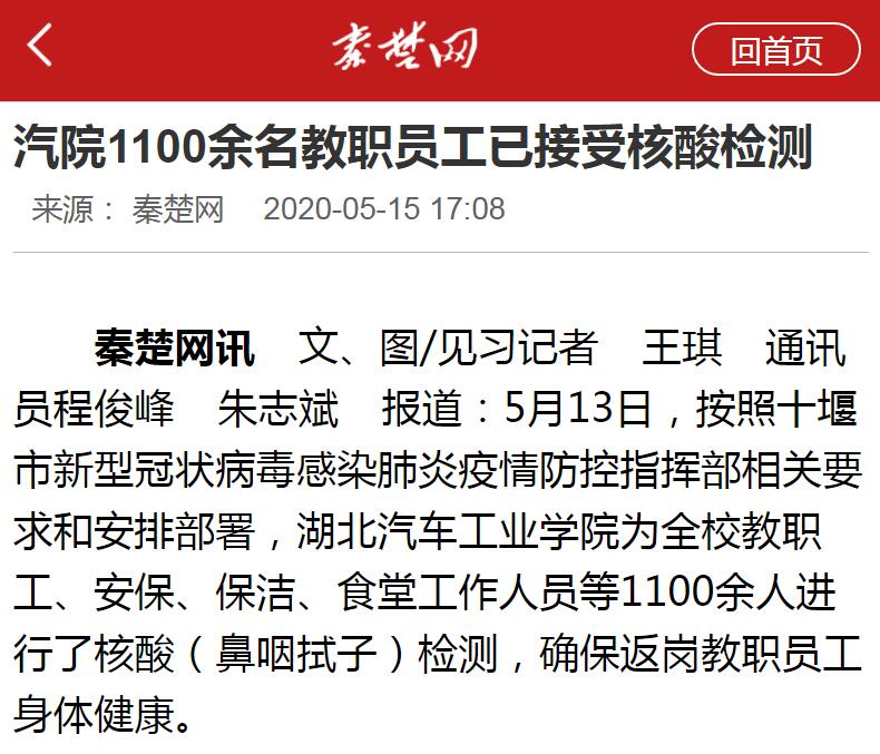 【秦楚网】汽院1100余名教职员工已接受核酸检测