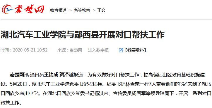 【秦楚网】湖北汽车工业学院与郧西县开展对口帮扶工作
