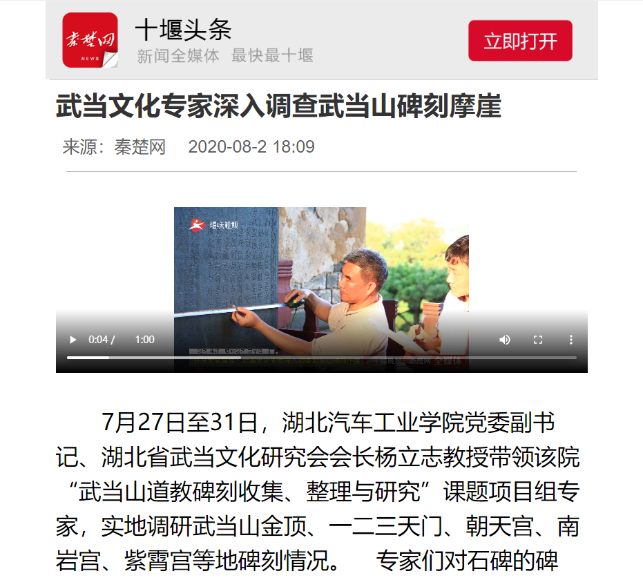 【秦楚网】武当文化专家深入调查武当山碑刻摩崖