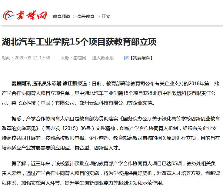 【秦楚网】湖北汽车工业学院15个项目获教育部立项