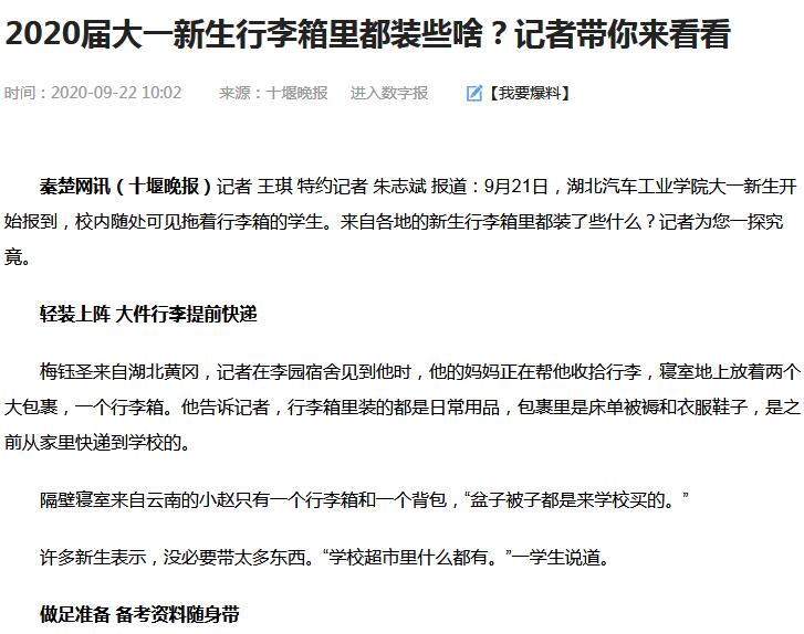 【秦楚网】2020届大一新生行李箱里都装些啥?记者带你来看看