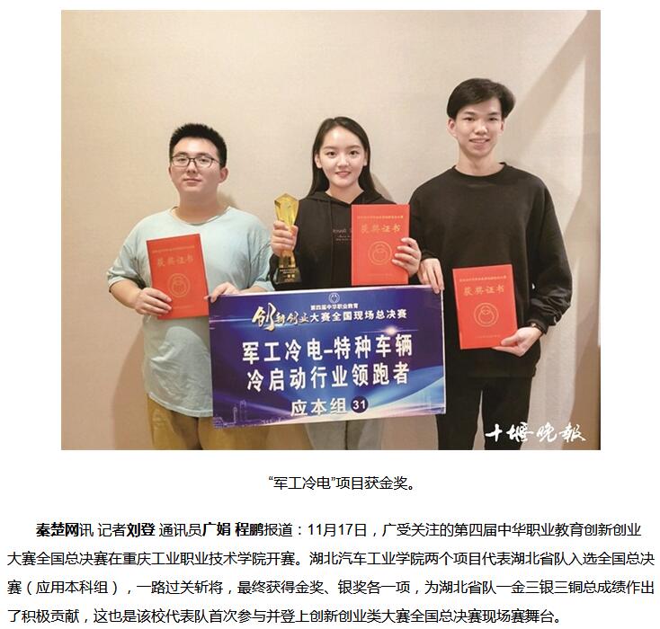 【秦楚网】湖北汽车工业学院勇夺一金一银