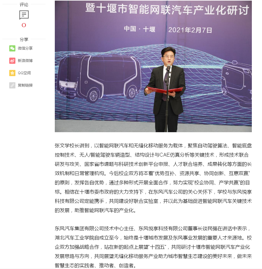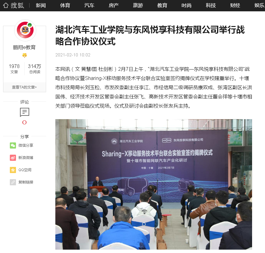 【搜狐网】湖北汽车工业学院与东风悦享科技有限公司举行战略合作协议仪式