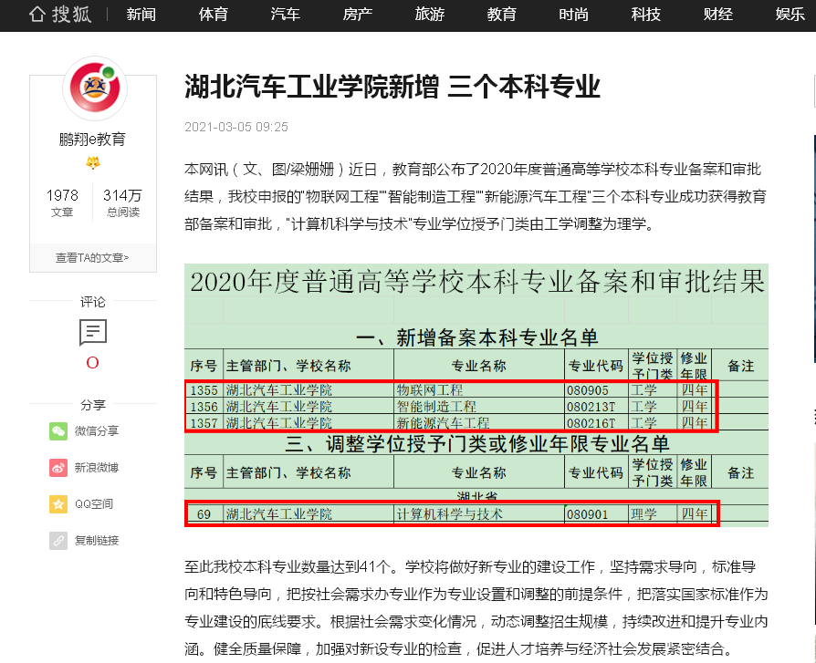【搜狐网】湖北汽车工业学院新增三个本科专业