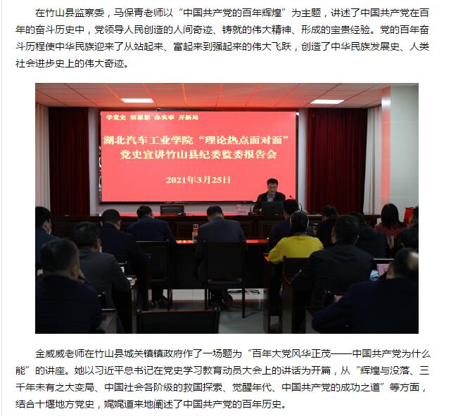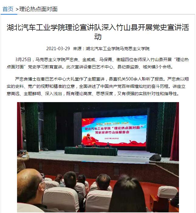 【湖北理论信息网】湖北汽车工业学院理论宣讲队深入竹山县开展党史宣讲活动
