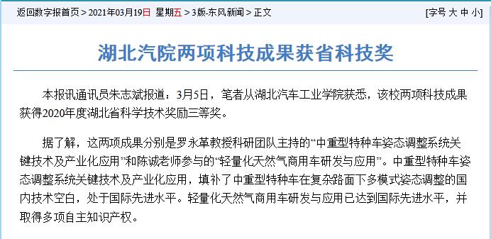 【十堰日报】湖北汽院两项科技成果获省科技奖