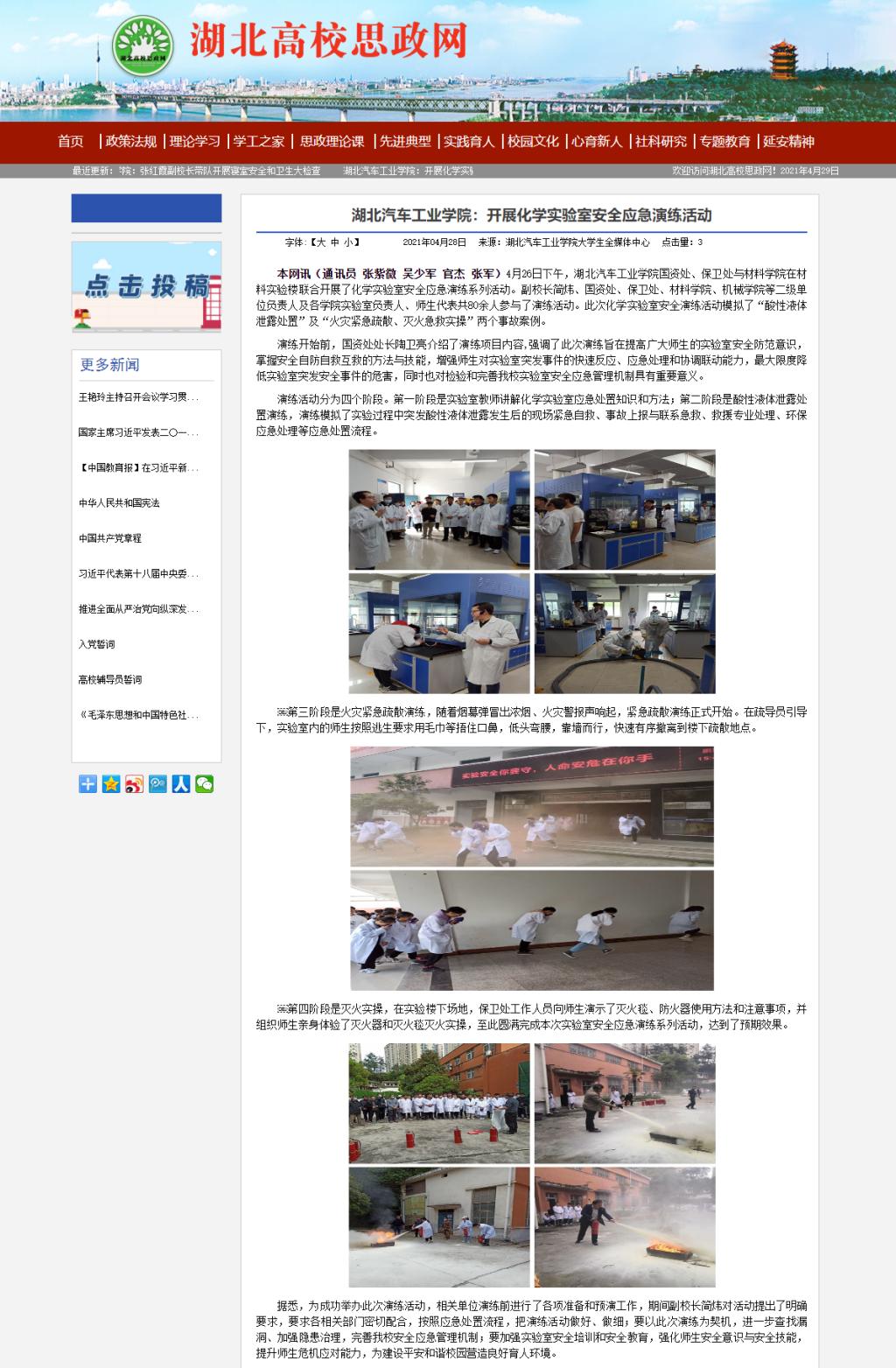 【湖北高校思政网】湖北汽车工业学院:开展化学实验室安全应急演练活动