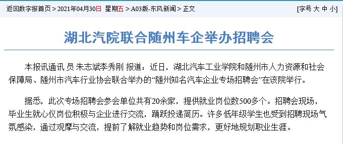 【十堰日报】湖北汽院联合随州车企举办招聘会