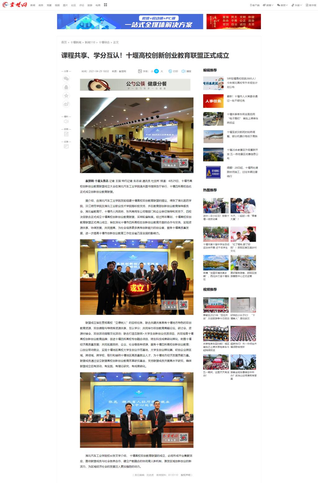 【秦楚网】课程共享、学分互认!十堰高校创新创业教育联盟正式成立