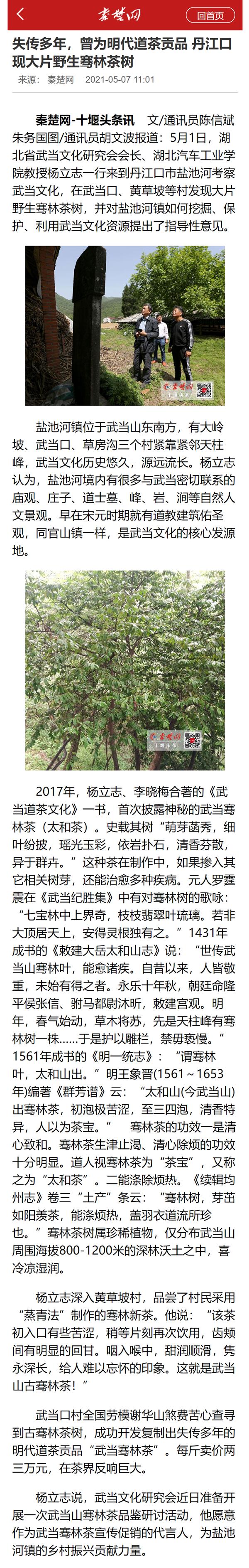 【秦楚网】我校武当文化研究与传播中心研究人员在丹江口市盐池河镇发现大片野生骞林茶树