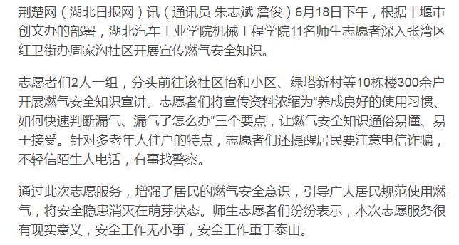 【荆楚网】湖北汽车工业学院志愿者入户宣传燃气安全知识