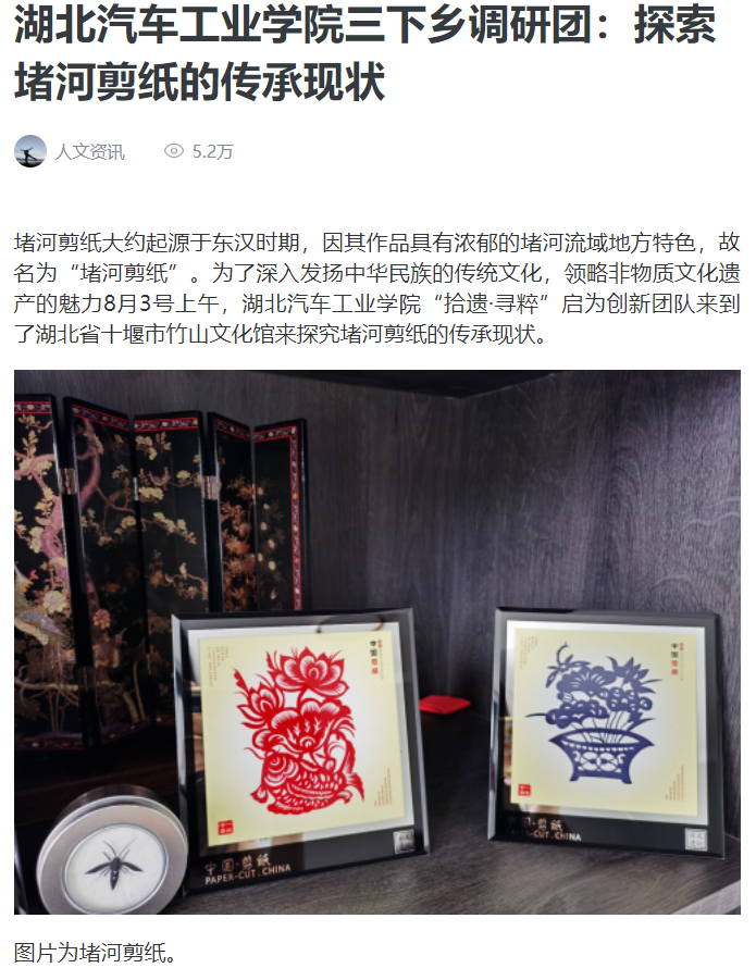 【新华网】湖北汽车工业学院三下乡调研团:探索堵河剪纸的传承现状