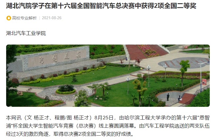 【腾讯内容开放平台】湖北汽院学子在第十六届全国智能汽车总决赛中获得2项全国二等奖