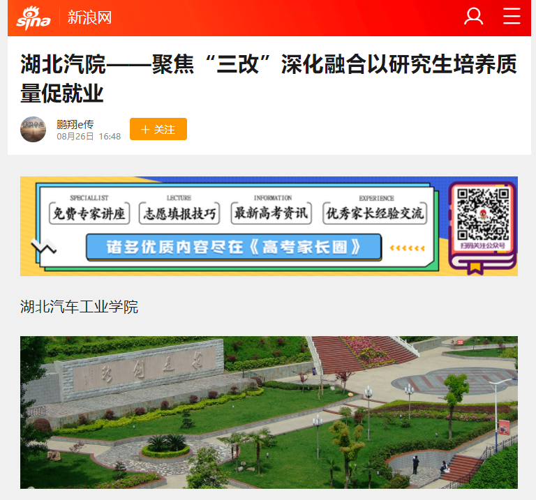 【新浪网】湖北汽院——聚焦“三改”深化融合以研究生培养质量促就业