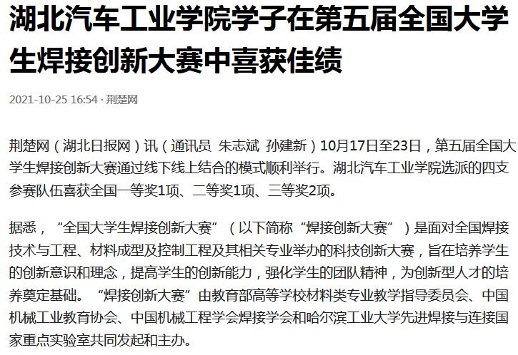 【荆楚网】湖北汽车工业学院学子在第五届全国大学生焊接创新大赛中喜获佳绩