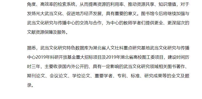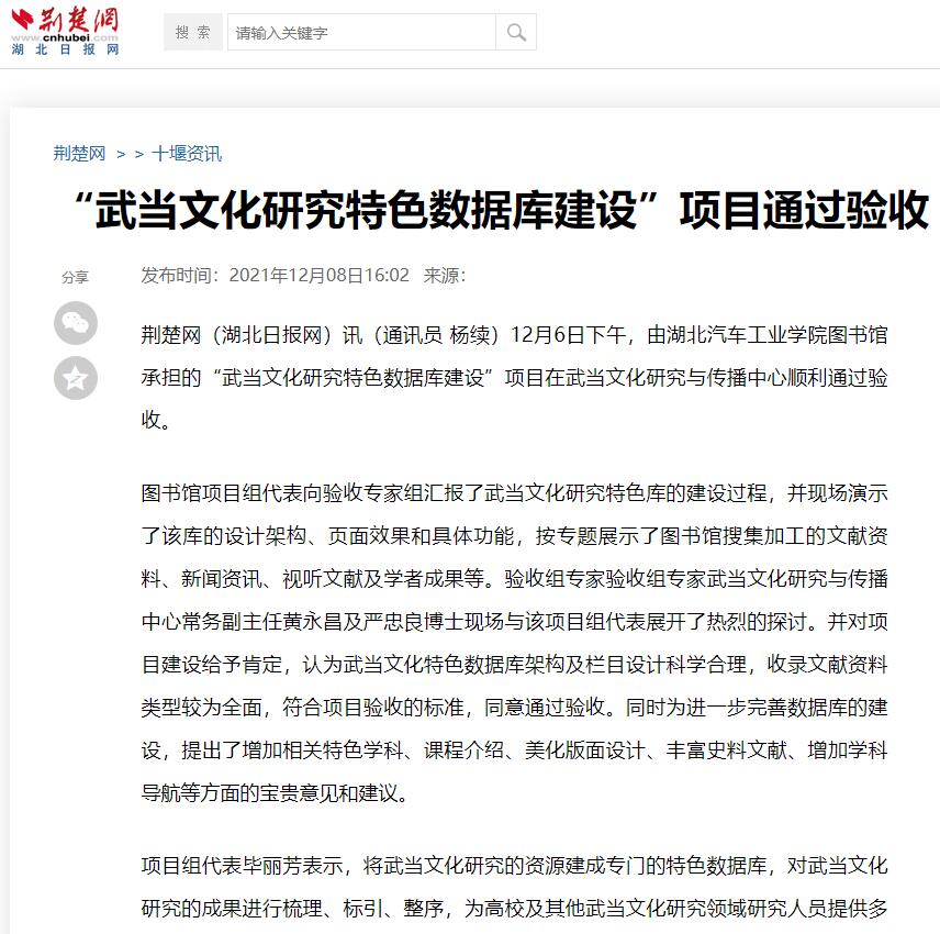 【荆楚网】“武当文化研究特色数据库建设”项目通过验收