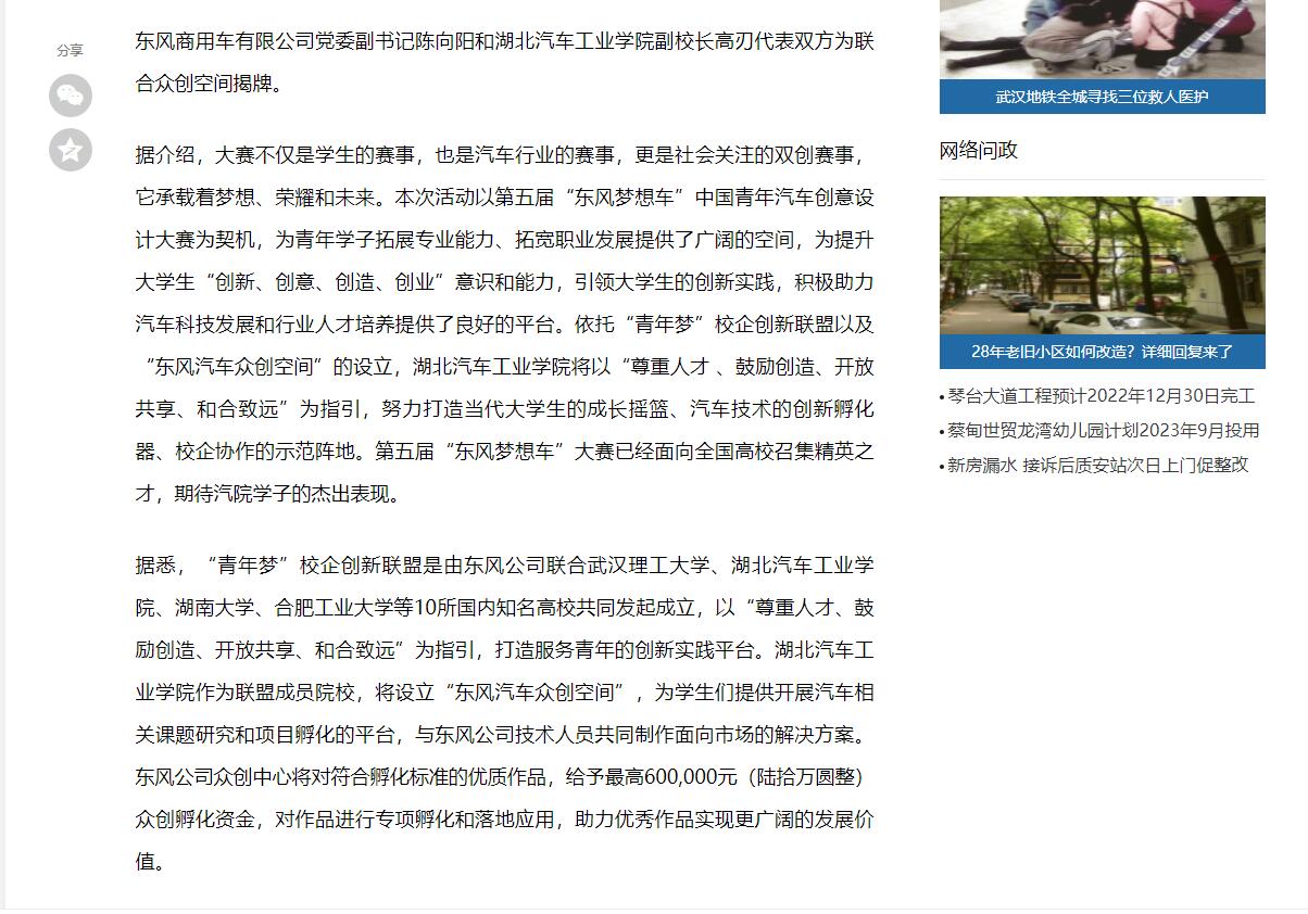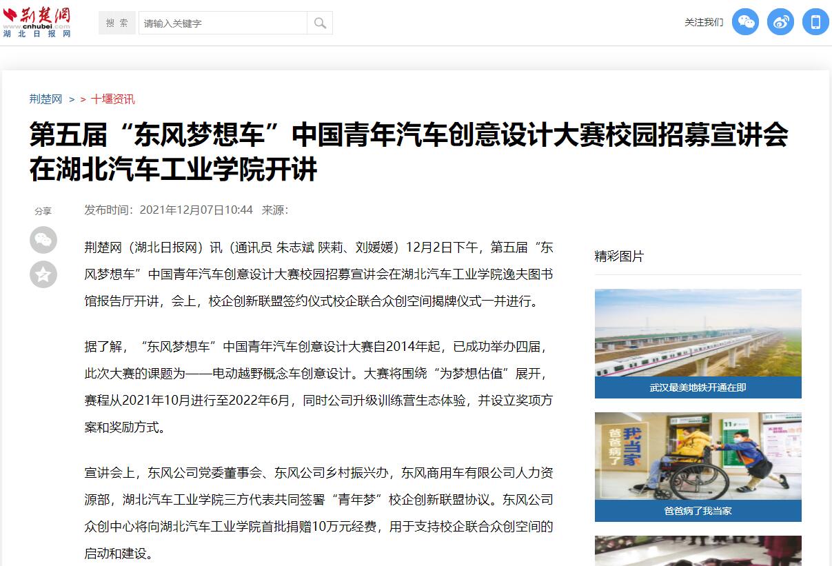 【荆楚网】第五届“东风梦想车”中国青年汽车创意设计大赛校园招募宣讲会在湖北汽车工业学院开讲
