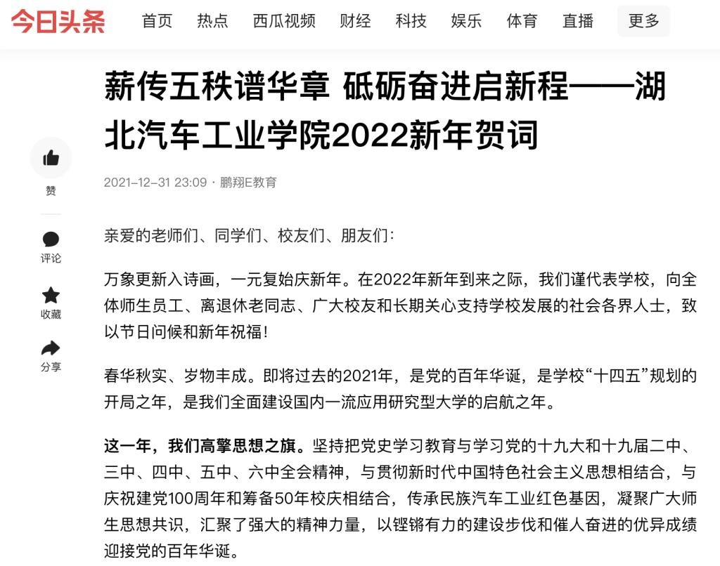 【今日头条】薪传五秩谱华章 砥砺奋进启新程——湖北汽车工业学院2022新年贺词