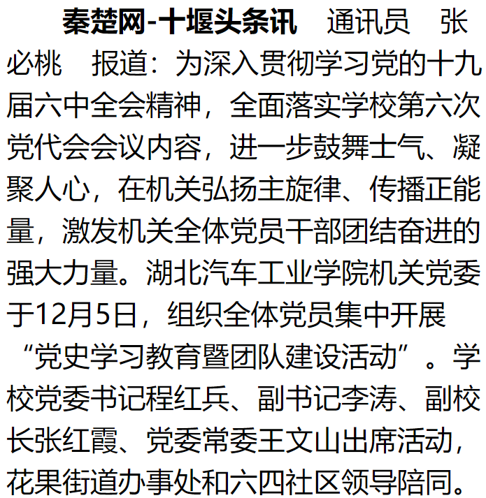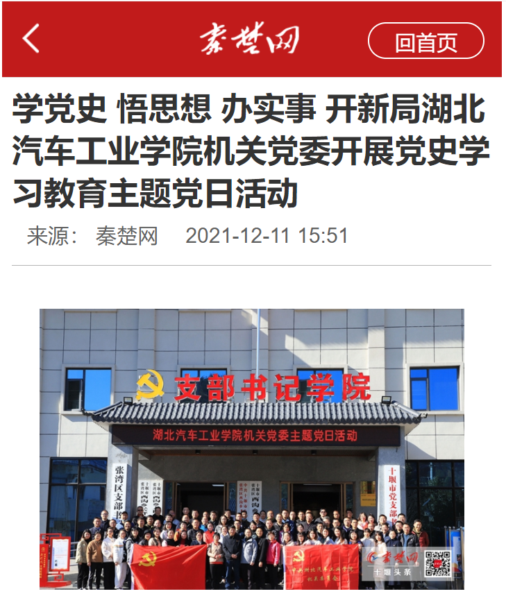【秦楚网】学党史 悟思想 办实事 开新局湖北汽车工业学院机关党委开展党史学习教育主题党日活动