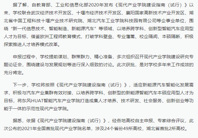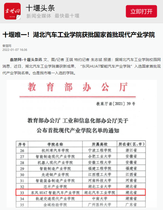 【十堰头条】十堰唯一!湖北汽车工业学院获批国家首批现代产业学院