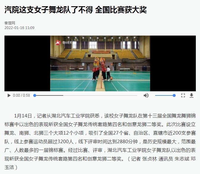 【秦楚网】汽院这支女子舞龙队了不得 全国比赛获大奖
