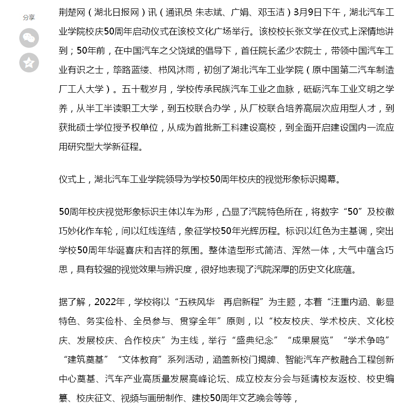 【荆楚网】湖北汽车工业学院校庆50周年启动仪式举行