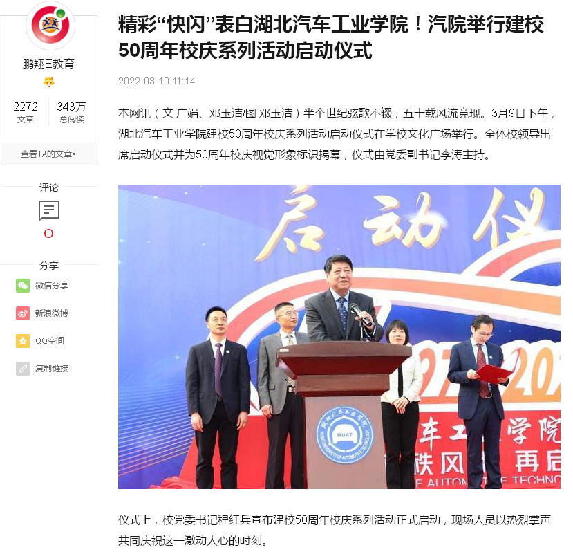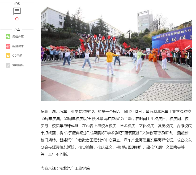 【搜狐网】精彩“快闪”表白湖北汽车工业学院!汽院举行建校50周年校庆系列活动启动仪式