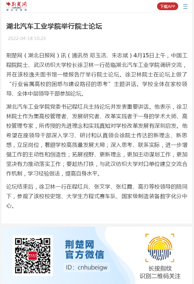 【荆楚网】湖北汽车工业学院举行院士论坛