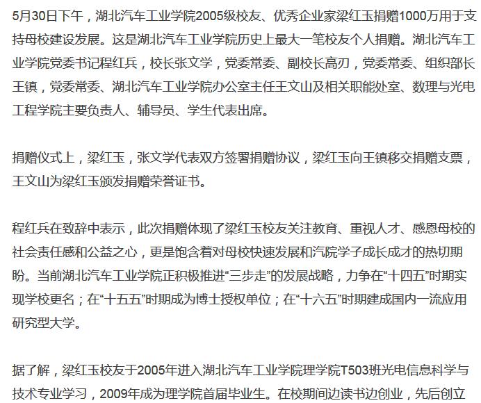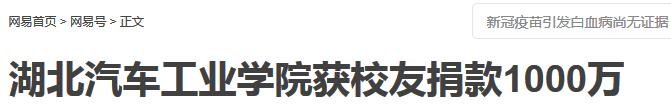 【网易】湖北汽车工业学院获校友捐款1000万