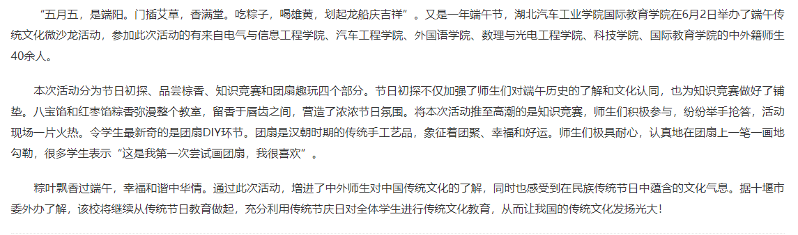 【湖北省委外办】湖北汽车工业学院举办端午传统文化微沙龙