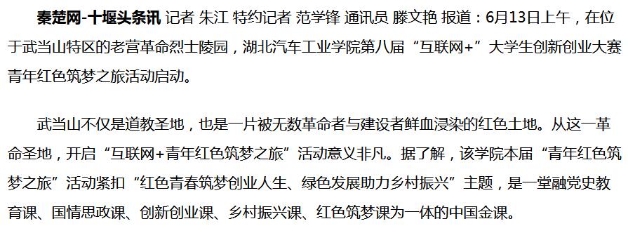 【秦楚网】湖北汽院“互联网+”大学生创新创业大赛青年红色筑梦之旅启动