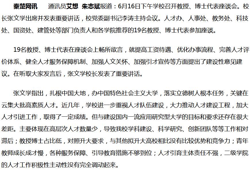 【秦楚网】湖北汽车工业学院召开高层次人才代表座谈会