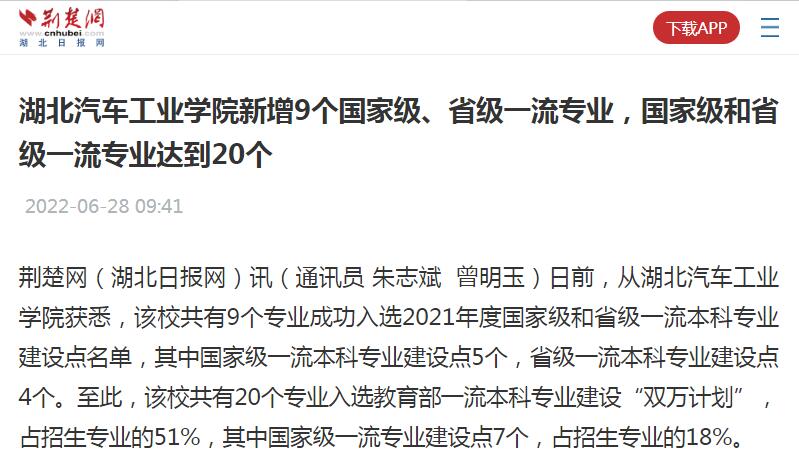 【荆楚网湖北日报网】湖北汽车工业学院新增9个国家级、省级一流专业,国家级和省级一流专业达到20个