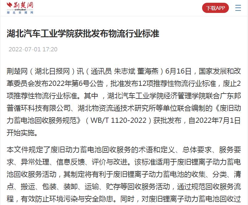 【荆楚网(湖北日报网)】湖北汽车工业学院获批发布物流行业标准