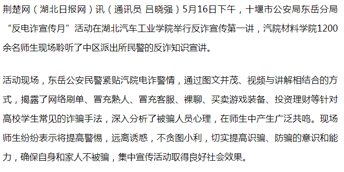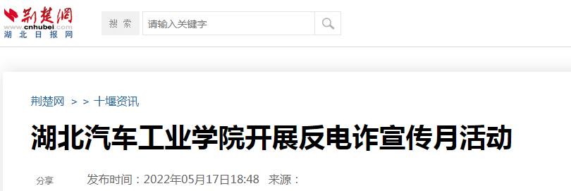 【荆楚网】湖北汽车工业学院开展反电诈宣传月活动