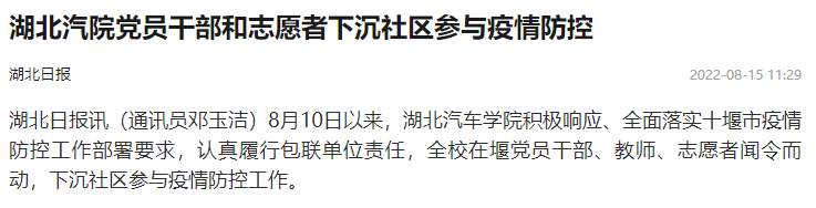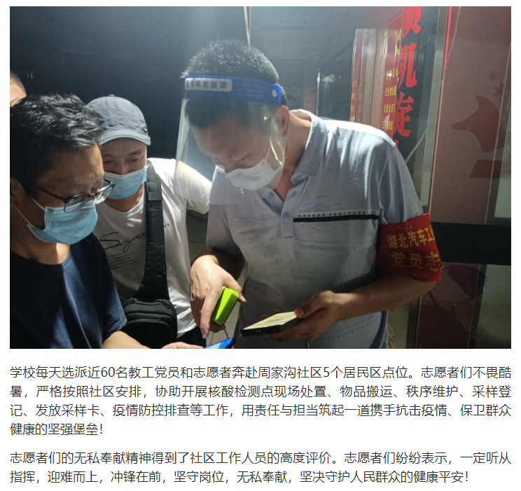 【湖北日报】湖北汽院党员干部和志愿者下沉社区参与疫情防控