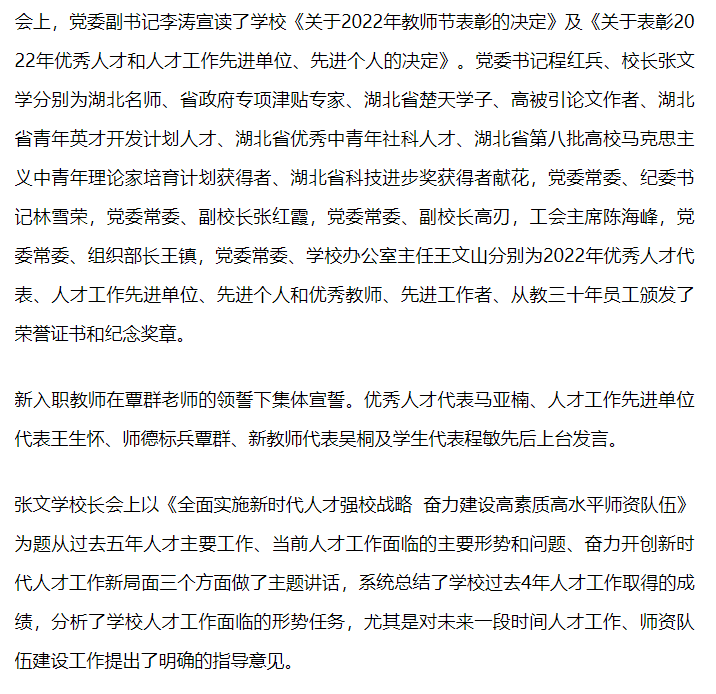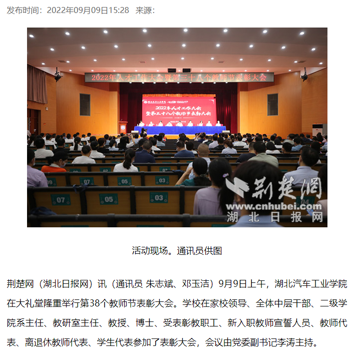 【荆楚网(湖北日报网)】湖北汽车工业学院2022年人才工作大会暨第三十八个教师节表彰大会隆重召开