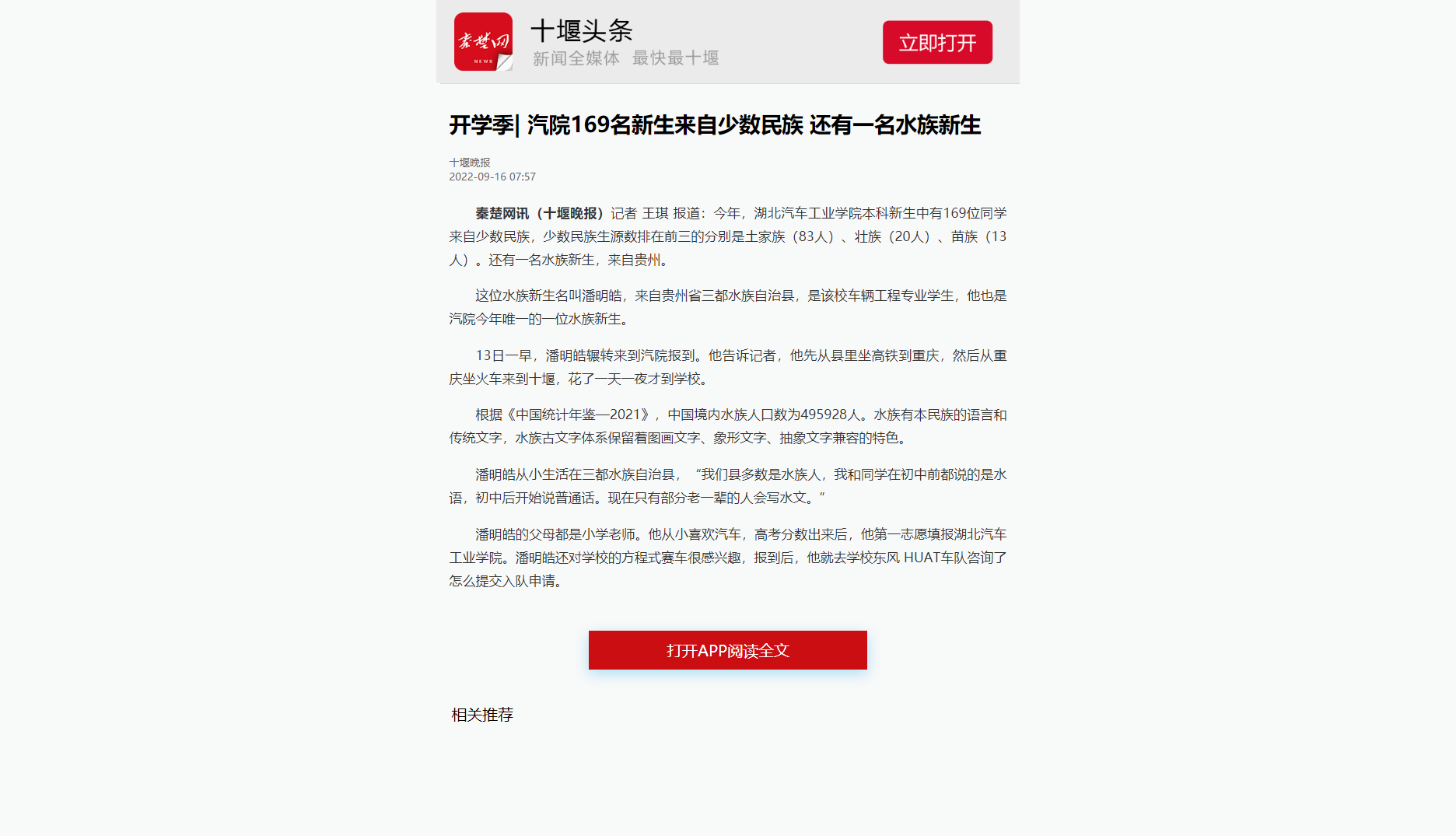 【秦楚网】开学季| 汽院169名新生来自少数民族 还有一名水族新生